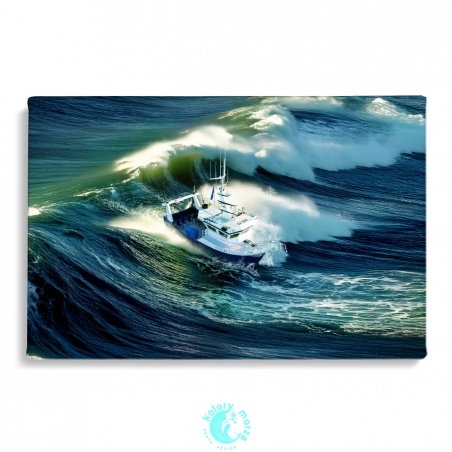 W sercu wzburzonego morza, gdzie horyzont stapia się z niebem, kuter przecina fale z odwagą i siłą.